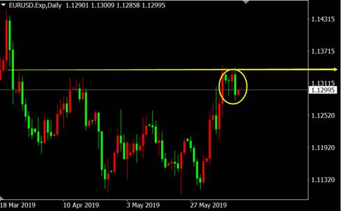 从欧元兑美元日线图来看,价格上涨至前期压力区附近出现吞没看跌K线形态,反弹恐将结束。