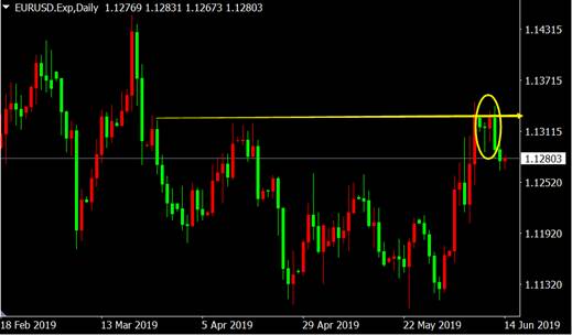 从欧元兑美元日线图来看,价格上涨至前期压力区附近出现吞没看跌K线形态,反弹恐将结束。