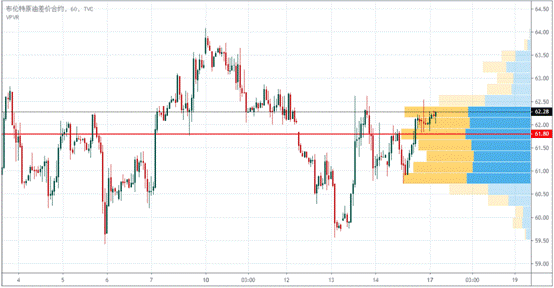 布伦特原油近10个交易日内,最高成交量在61.80。