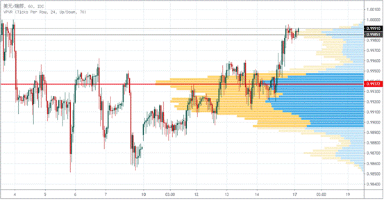 USDCHF近10个交易日内,最高成交量在0.9937。