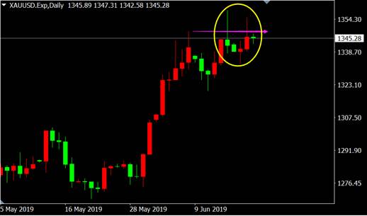 从国际黄金日线图来看,价格突破前期高点之后连续出现经典上吊线看跌K线金价已刷新一年高点,回调危险逐渐逼近。