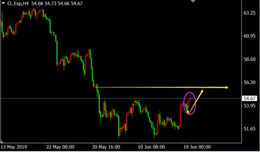 从WTI原油4小时图来看价格反弹至前期高点附近出现红三兵K线看涨形态,不过K线形态强势不足,突破前期高点重启多头上涨行情恐需更多时间。
