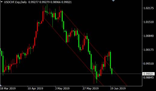 从美元兑瑞郎日线图来看,价格反弹结束重新回到下跌趋势轨道,行情将再创新低以延续下跌趋势。