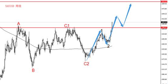 黄金自从2015年底开始反弹盘整,到2019年6月20日的破位积蓄了三年半的势能。波浪结构上划分来看,3浪2位置上没有深调,昨日的突破直接锁定了市场进入大3浪3的主升浪区间,1360这一区间阻力带被打开,上方空间巨大。