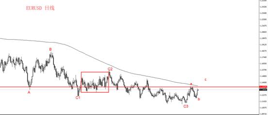 欧元依旧处于C浪4的内部结构中,短期上方1.1338一带是前高和200周期均线重叠压力位置。参考之前C2走势较为复杂,目前欧元的多头趋势保持谨慎态度,短期不建议做欧元。