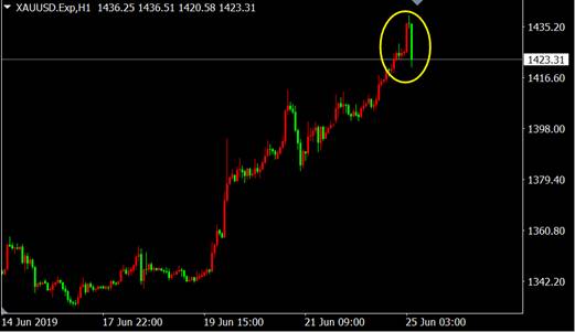 受美联储利率决议鸽派发酵的影响,美元遭遇重挫黄金多头强势,金价迅速刷新自2013年8月30日来高位,但从国际黄金1小时图来看,短线黄金将构成黄昏之星的看跌K线形态,上涨势头恐趋缓多头仓位应该考虑获利了结。
