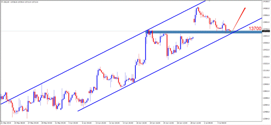 交易策略:当前价格测试强支撑位,可考虑直接建立多头合约,止损13600附近,目标位14000附近。