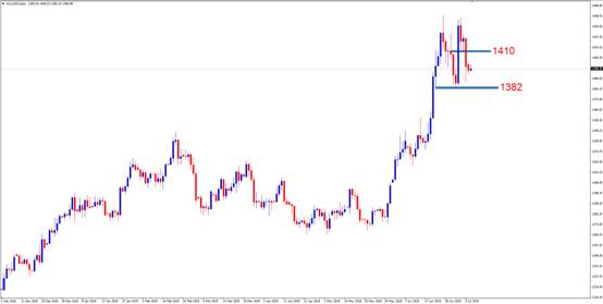 交易策略:激进的投资者可考虑1382-1410区间高抛低吸,止损80点左右,目标150点左右。