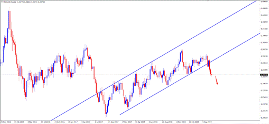 技术点评:W1周期中,美加下破通道后空头持续发力,后市依然持续看空,不建议投资者关注多头。