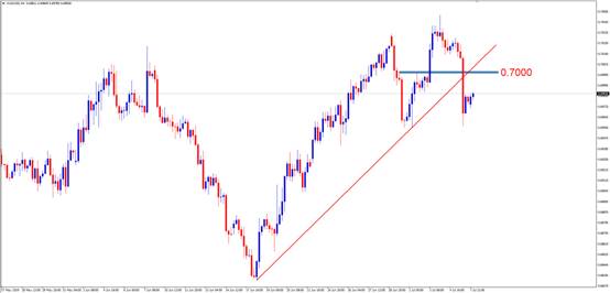 交易策略:建议投资者可考虑0.7000附近做空,止损0.7050附近,止盈0.6940附近。