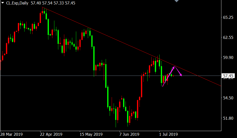 57.50附近做空,止损57.80,目标57.00
