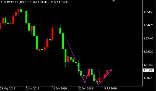 从美元兑加元日线图来看,价格下跌末期出现W底反转形K线形态,反弹行情即将开启。