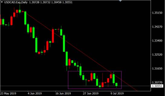 从美元兑加元日线图来看,价格受下跌趋势线压制,行情反弹疲弱将再度创出新低。