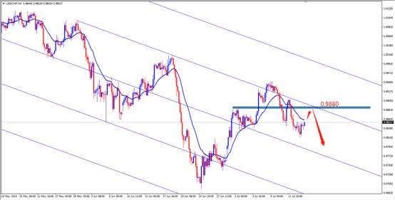 交易策略:投资者可考虑0.9880附近做空,止损0.9930附近,目标0.9800附近。