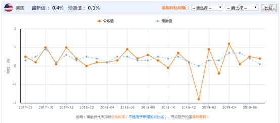 20:30美国6月零售销售月率录得0.4%,高于市场预期的0.2%;