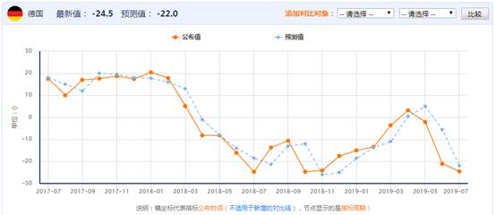 17:00德国7月ZEW经济景气指数公布值为-24.5,低于市场预期值-22;