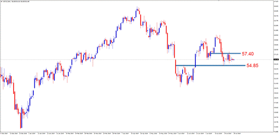 交易策略:建议投资者可考虑57.40附近做空,止损58.40附近,止盈55.40附近。