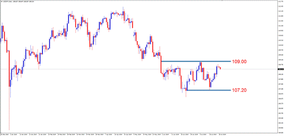 交易策略:激进的投资者可考虑107.20-109.00区间高抛低吸,止损60点左右,止盈80点左右。