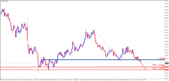 技术点评:W1周期中,英镑跌破1.2580强支撑位,后市大概率保持下降趋势。