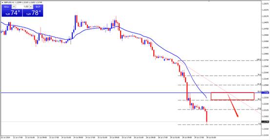 技术点评:H1周期中,英镑呈现完整的空头单边行情,后市大概率保持下降趋势,关注核心阻力位1.2260附近。