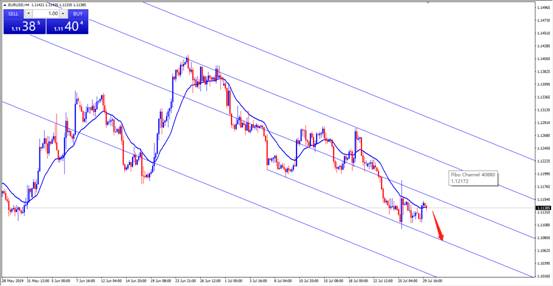 技术点评:H4周期中,欧美持续震荡在核心支撑位,但震荡时间越久,支撑效果越差,因高点的不断下移,短期欧元或出现突破新低行情。