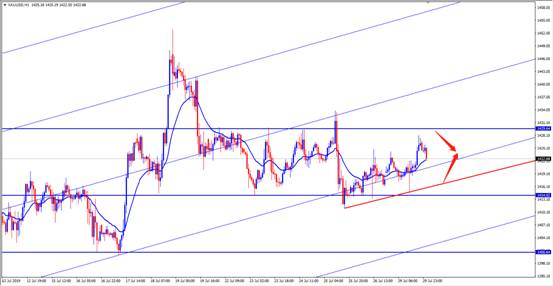金价周一走强,因市场预期美联储本周将降息,而投资者则在等待有关美联储未来宽松货币政策走向的线索。市场分析人士认为黄金市场将在一定程度上保持观望,市场预期美联储将有25个基点的降息。但焦点的问题是,未来将会怎么样,”联邦基金利率期货走势暗示,交易商认为美联储在7月30-31日的政策会议上降息25个基点的机率为77%。