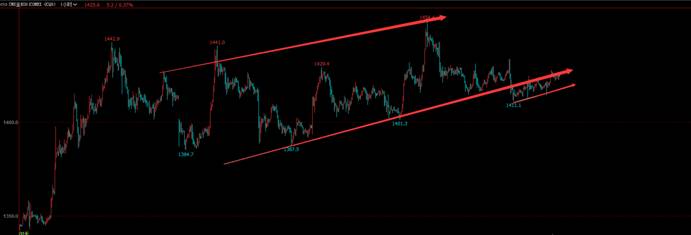 艾德证券期货研究部:黄金近两个交易日振幅有所缩窄,在美联储议息会议之前预计黄金不会有大行情,上周五因GDP数据超出预期导致黄金跌破上升通道的下轨,目前持续在压力位附近震荡,今日重点关注1426美元/盎司的压力和下方1418美元/盎司的支撑,目前以观望为主,晚间黄金若能够突破1426美元/盎司可以考虑追入做多,止损设置为:1423美元/盎司。