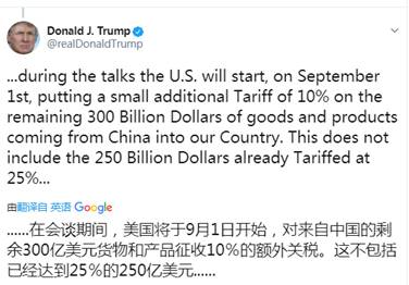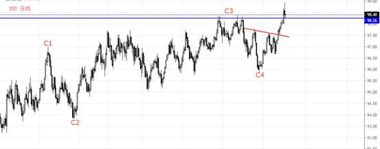 中美高层刚在上海结束贸易谈判,今日凌晨特朗普就在推特上突然宣布加征关税,将从9月1日对中国3000亿美元输美商品加征10%关税。消息一出,美指将稍早之前的涨势全部回吐,日线在触及99整数关口后收了根阴K,目前美指回踩前期阻力线98.26一带。不断升级的贸易紧张局势和低于预期的美国就业数据,可能会增强美联储在近期进一步降息的理由。而波浪角度来看目前仍处于上升趋势最后的C5结构中,重点关注今晚的非农数据。