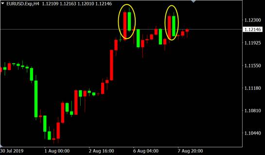 从欧元兑美元4小时图来看,价格冲高回落了两次均出现乌云盖顶的看跌K线形态,上冲乏力,多单应考虑获利了结。