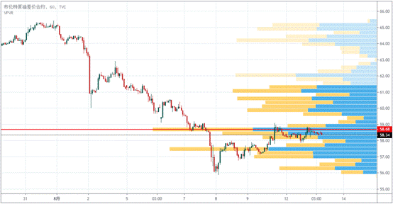 布伦特原油近10个交易日内,最高成交量在58.68。