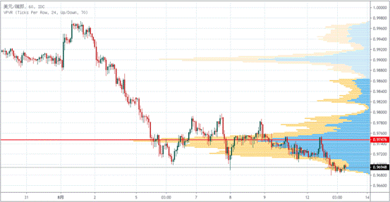 USDCHF近10个交易日内,最高成交量在0.9748。