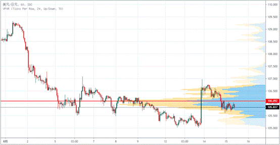 USDJPY近10个交易日内,最高成交量在106.09。