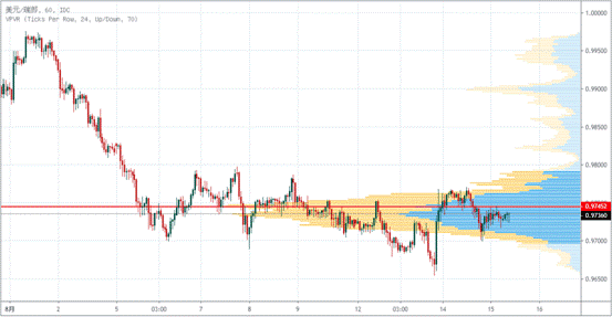 USDCHF近10个交易日内,最高成交量在0.9745。