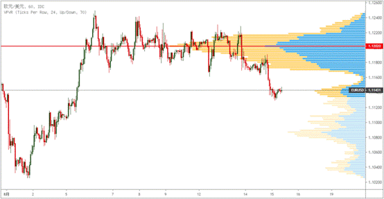 EURUSD近10个交易日内,最高成交量在1.1202。