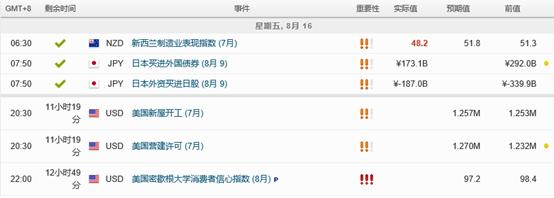 周四公布的美国7月零售销售月率录得0.7%,前值修正为0.3%,预测值为0.3%。同时公布的美国至8月10日当周初请失业金人数录得22万人,升至六周高位,高于预期值和前值。
