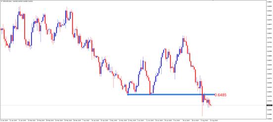 交易策略:激进的投资者可考虑0.6485附近做空,止损0.6555附近,止盈0.6350附近。