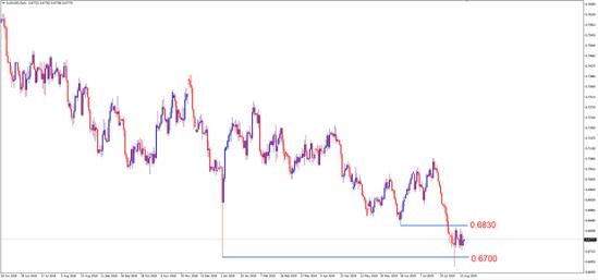 备选策略:激进投资者可考虑0.6750附近做多,止损0.6700附近,止盈0.6800附近。