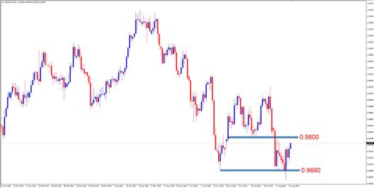 交易策略:激进的投资者可考虑0.9680-0.9800区间高抛低吸,止损60点左右,止盈80点左右。