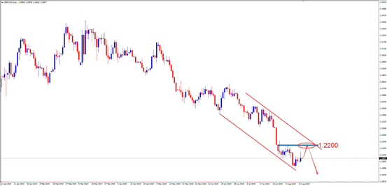 交易策略:建议投资者可考虑1.2200附近做空,止损1.2300附近,止盈1.2000附近。