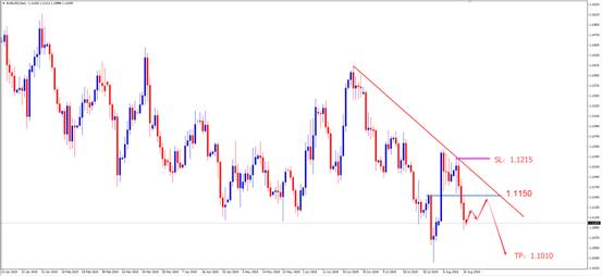 交易策略:可考虑1.1150附近做空,止损1.1215附近,止盈1.1010附近。