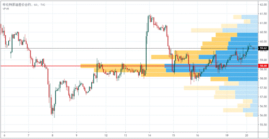 布伦特原油近10个交易日内,最高成交量在58.68。