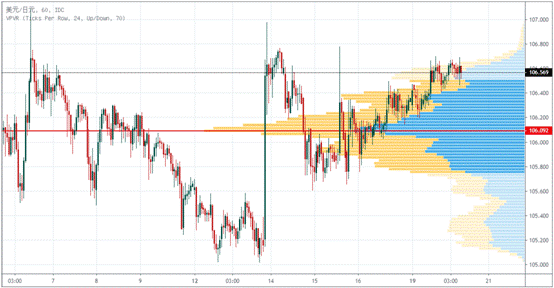 USDJPY近10个交易日内,最高成交量在106.09。