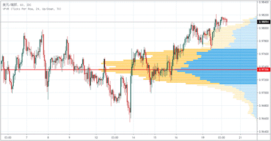 USDCHF近10个交易日内,最高成交量在0.9736。