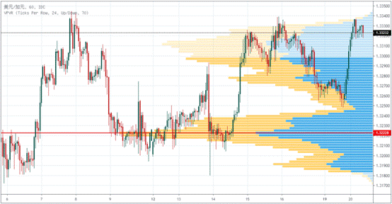 USDCAD近10个交易日内,最高成交量在1.3223。