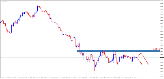 技术点评:H4周期中,澳美保持0.6810强阻力位下方震荡调整,大周期依然保持空头,本周主考虑逢高做空思路。