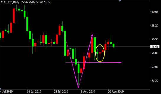 55.80附近做多,止损55.50,目标56.50