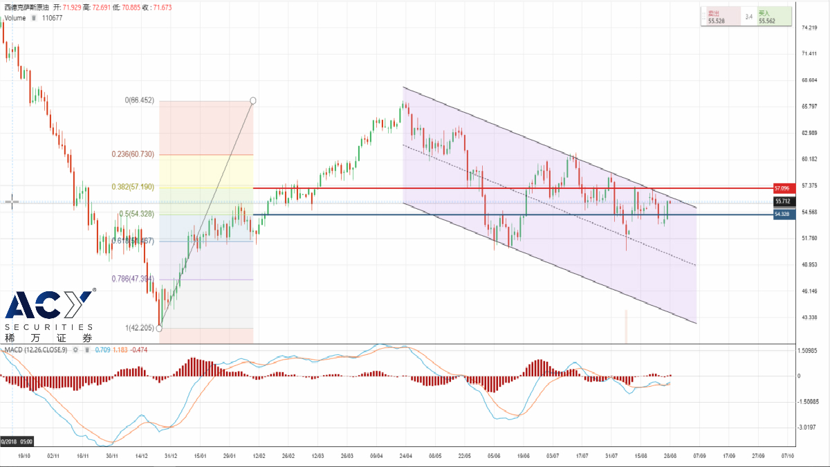 8月28日(周三),昨日晚间美盘时段,原油市场传来久违的利好消息,油价自53.70低位快速反弹,并且今日凌晨美国石油协会公布的数据显示,美国截至8月23日当周API原油库存超预期大幅减少1110万桶,预期减少213.3万桶;汽油库存减少34.9万桶;精炼油库存减少250万桶;巨幅下降的库存数据公布后,油价进一步上行,涨幅扩大至3.82%。