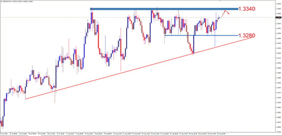 交易策略:激进投资者可尝试于1.3340附近做空,止损1.3380附近,止盈1.3280附近。