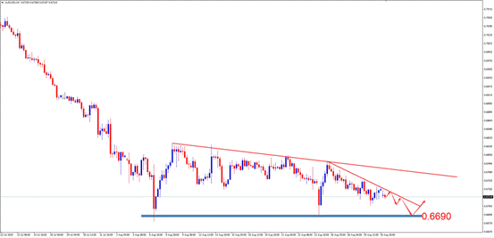 备选策略:激进投资者可尝试于0.6690附近做多,止损0.6660附近,止盈0.6780附近。