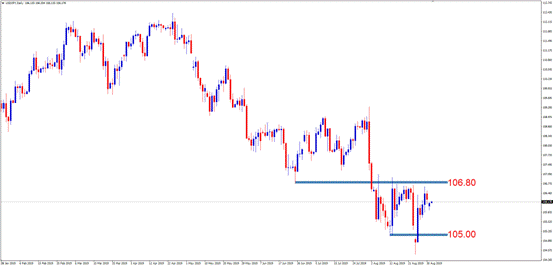 交易策略:激进投资者可考虑105.00-106.80区间高抛低吸,止损60点左右,止盈100点左右。